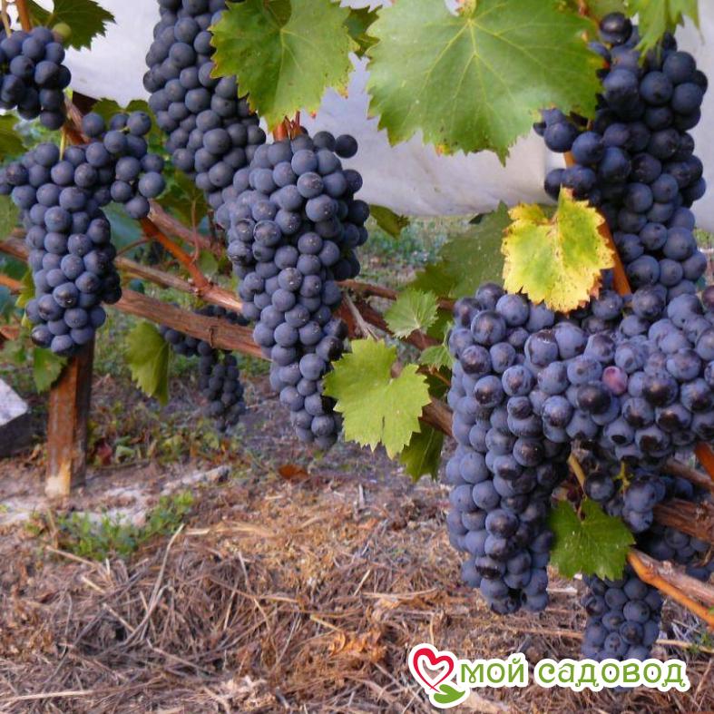 Виноград Рубиновый Магарача – достаточно распространенный универсальный сорт, созревающий в конце сентября, из которого изготавливают хорошие десертные и столовые вина, на дегустациях заслуживающие высокие оценки. Темно-синие рыхлые грозди, массой 130-150 г. Неплохая зимоустойчивость, при минимальном уходе будет радовать высокой урожайностью. Рубиновый Магарача предпочитает легкие, богатые почвы, как при низкоштамбовых, так и при высокоштамбовых формировках кустов. Магазин Мой Садовод, рекомендации по уходу Уход за виноградом сводится к регулярным поливам в сухую погоду, подкормкам и формированию куста. Для подкормки используют минеральные и органические удобрения (перепревший навоз, компост). Ранней весной кусты виноград поливают полным минеральным удобрением, растворенным в воде, перед цветением такую подкормку повторяют. Перед созреванием вносят фосфорно-калийные удобрения, а после сбора урожая проводят подкормку калием для повышения зимостойкости растений. Кроме того для лучшего вызревания лозы рекомендуется удаление пасынков и прищипывание верхушек в начале сентября. Формирование куста Винограда. Для формирования виноградных кустов необходимо установить надежную опору. Самая простая представляет собой два столба с несколькими рядами проволоки между ними. По мере роста побеги подвязывают к проволоке, задавая им нужное направление. Формирование куста винограда начинают с первого года, оставляя не более двух здоровых побегов у основания, остальные выламывают. На второй год на кусте оставляют по три почки на каждом побеге, на третий год на каждом плече оставляют 2-3 сильных побега, остальные удаляют. Пожалуйста, помните, что транспортировка и пересадка — стресс для растения. Перед высадкой в открытый грунт обработайте корневую систему стимулятором роста. С заботой о растениях, Мой Садовод. В нашем интернет-магазине вы сможете купить Винные сорта винограда Так же возможно вас заинтересуют Виноград Одесский черный и Виноград Мускат Одесский